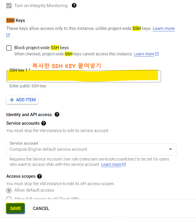 5. SSH Key 발급하고 VM Instance에 등록하기