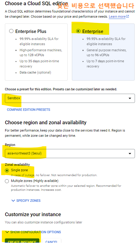 3-2. Cloud SQL 인스턴스 만들기